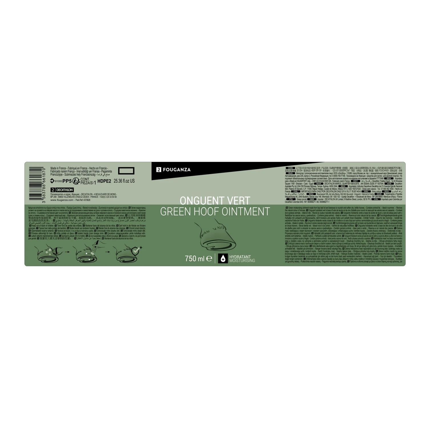 Our horse riding designers developed this ointment to protect your horse’s hooves. It nourishes the corn to preserve its flexibility and natural durability.Our HYDRATING green ointment, made with bay leaf oil, is the perfect daily, summer care product! It helps the growth of a soft corn and revives the natural colour of hooves!